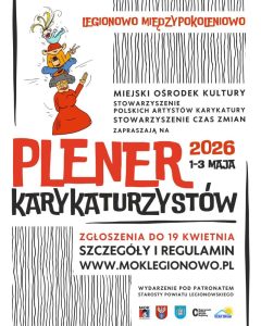 Zapraszamy artystów z całej Polski (i nie tylko!) do udziału w plenerze „Legionowo Międzypokoleniowo”, organizowanym przez Miejski Ośrodek Kultury im. Ch. S. Chaplina w Legionowie, Stowarzyszenie Polskich Artystów Karykatury oraz Stowarzyszenie Czas Zmian. Temat? Legionowo z przymrużeniem oka – jego historia, przyroda, charakterystyczne miejsca, znani mieszkańcy, sport, kultura, a nawet futurystyczne wizje miasta. Wydarzenie ma …