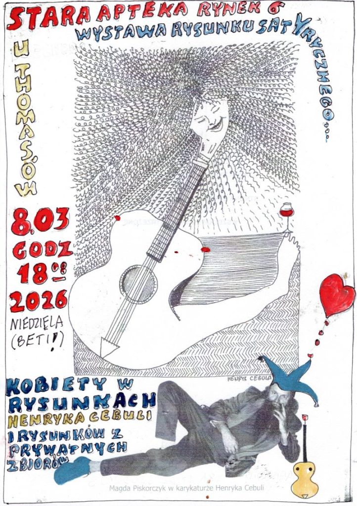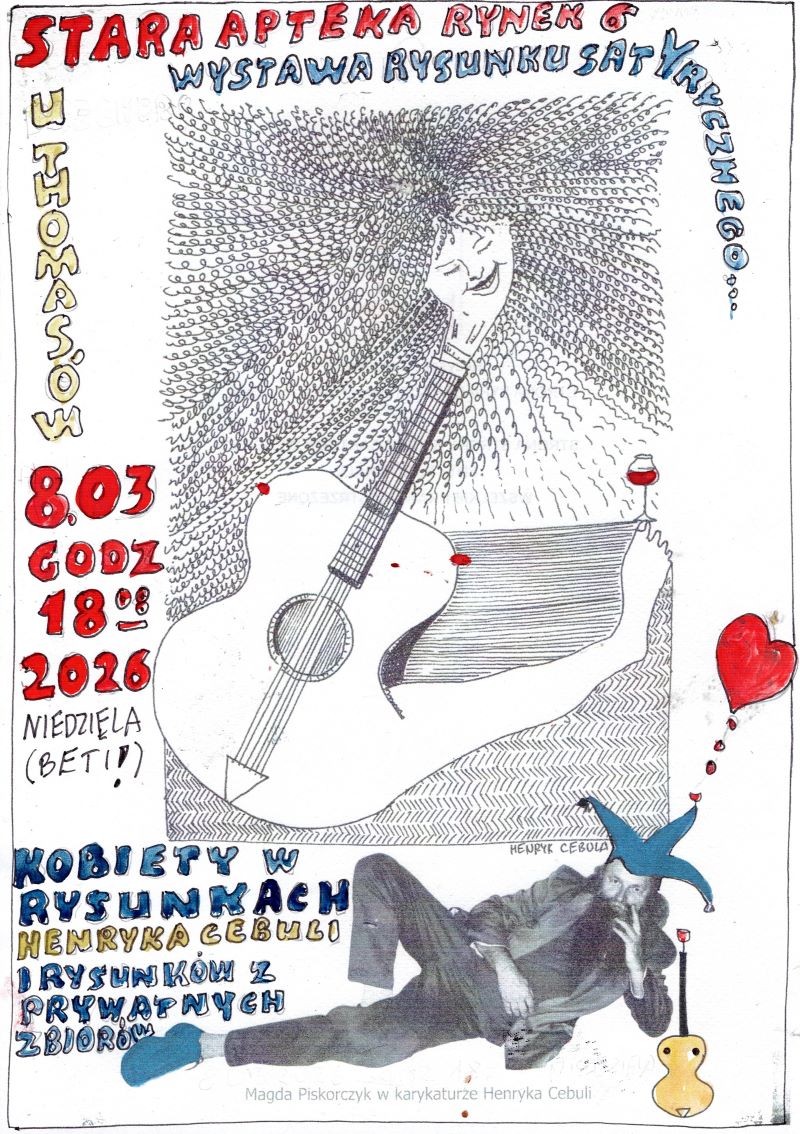 8.03. br. w Starej Aptece „U Thomasów”, odbędzie się wernisaż rysunków Henryka Cebuli, zorganizowany z okazji Międzynarodowego Dnia Kobiet. Zapraszamy na godz. 18.08