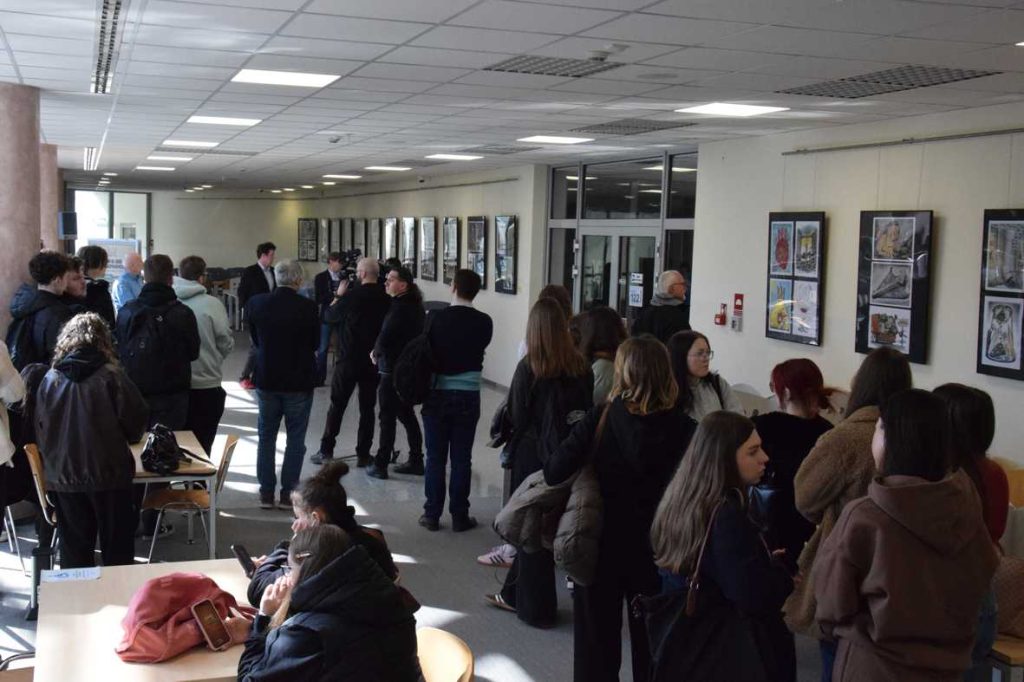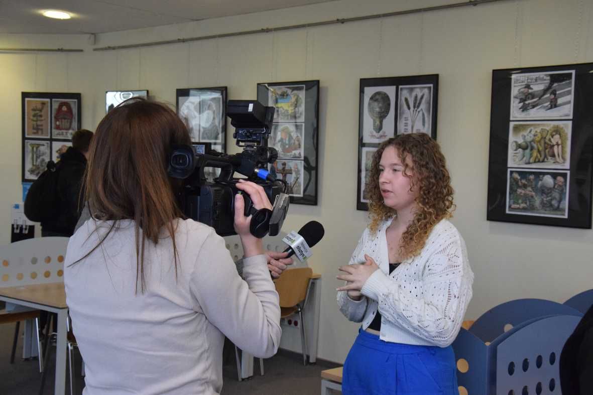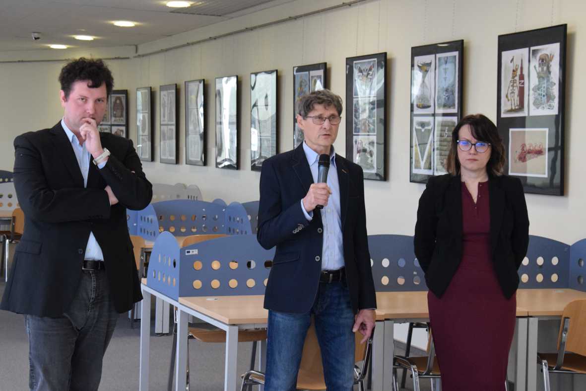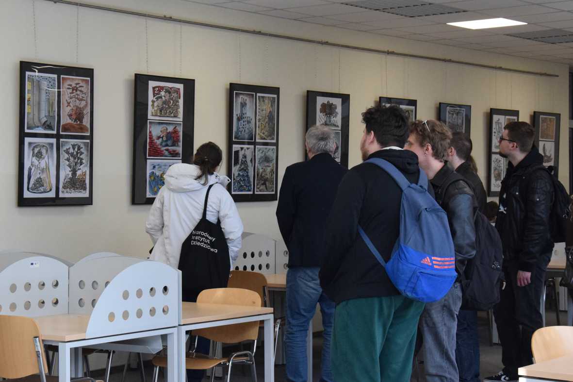 W Bibliotece Uniwersytetu Warmińsko-Mazurskiego otwarto dzisiaj (9 kwietnia 2026r.) wystawę rysunków ukraińskiego artysty Ołeksieja Kustowskiego. Rysownik i karykaturzysta od początku agresji Rosji na Ukrainę niemal codziennie publikuje w prasie tradycyjnej i internecie nowe rysunki, które stanowią komentarz do wydarzeń za naszą wschodnią granicą.